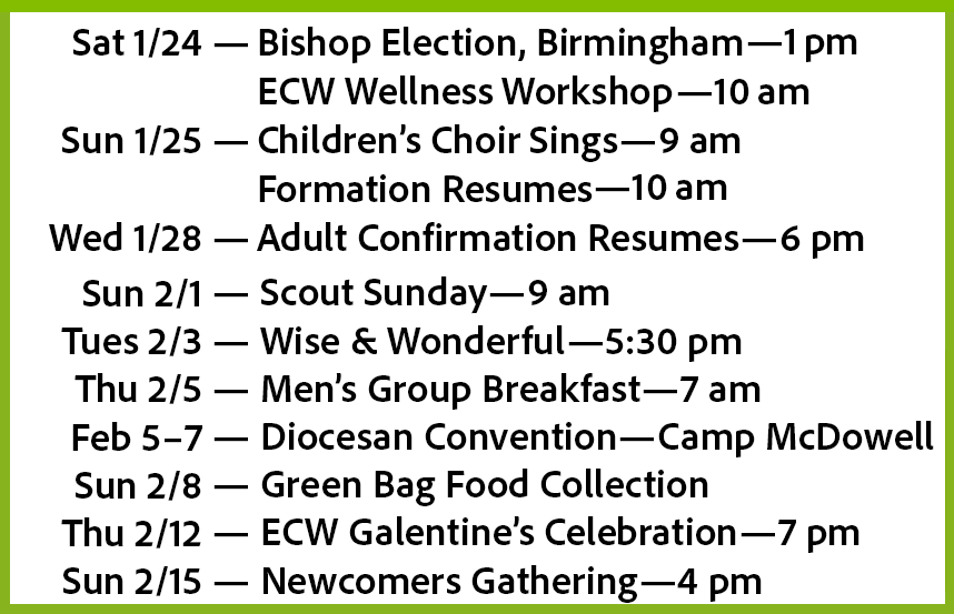 Sunday, Jan. 4, at 10 am in Parish Hall